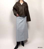 滑らかなフェイクレザーの質感が、カジュアルな中にもエレガントな印象をプラスします。