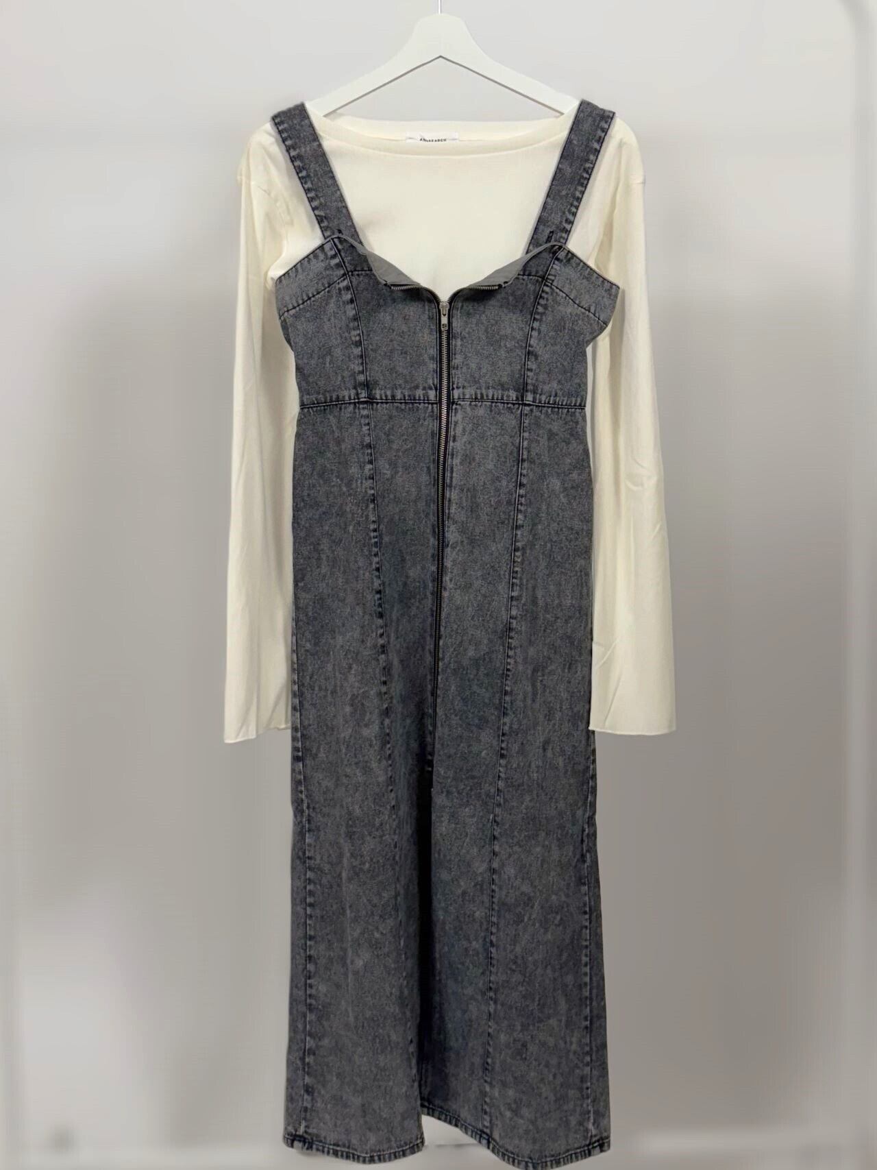 スタイリング自由自在。どんなアイテムと合わせてもこなれ感のあるスタイルが完成するデニム素材のジャンパースカート。