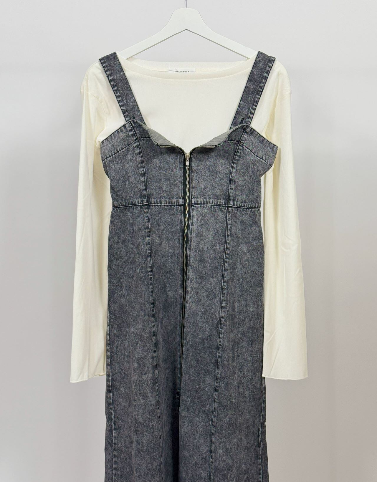 ケミカルブリーチ加工を施したスタイリッシュなデニム×ビスチェシルエットで甘辛ミックスなスタイルが作れるアイテムです。