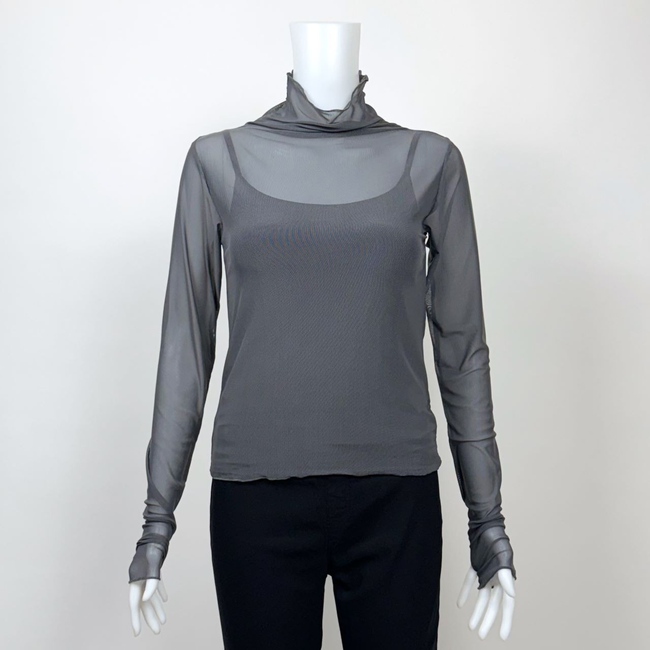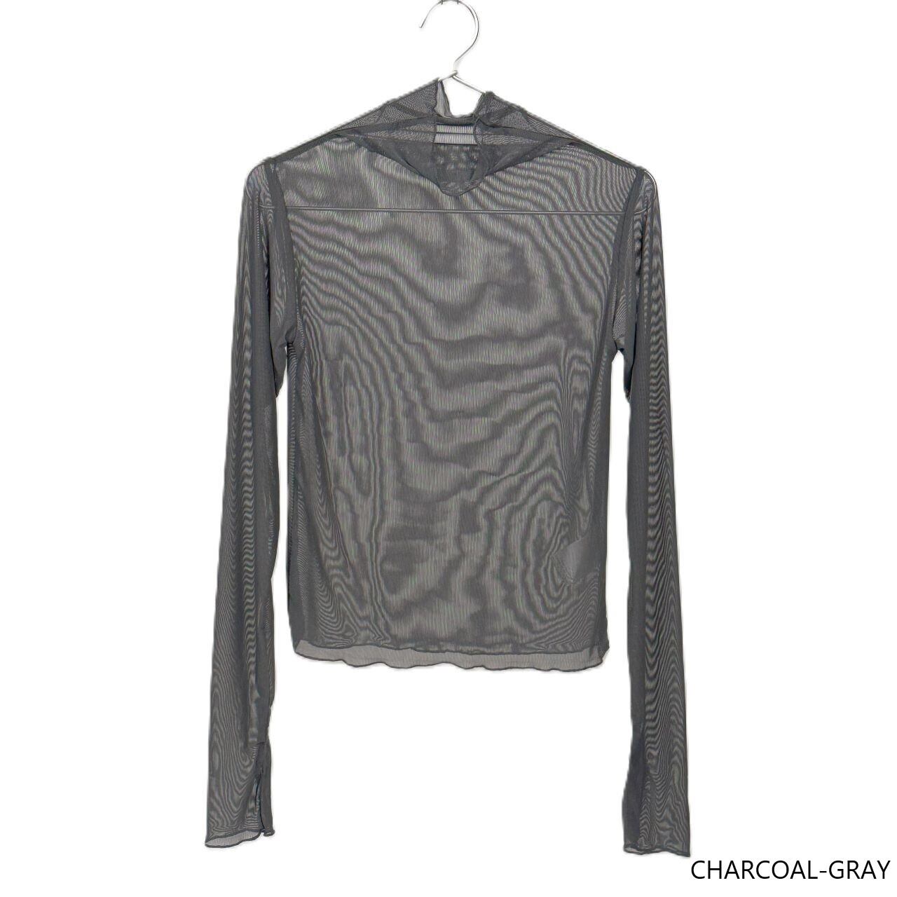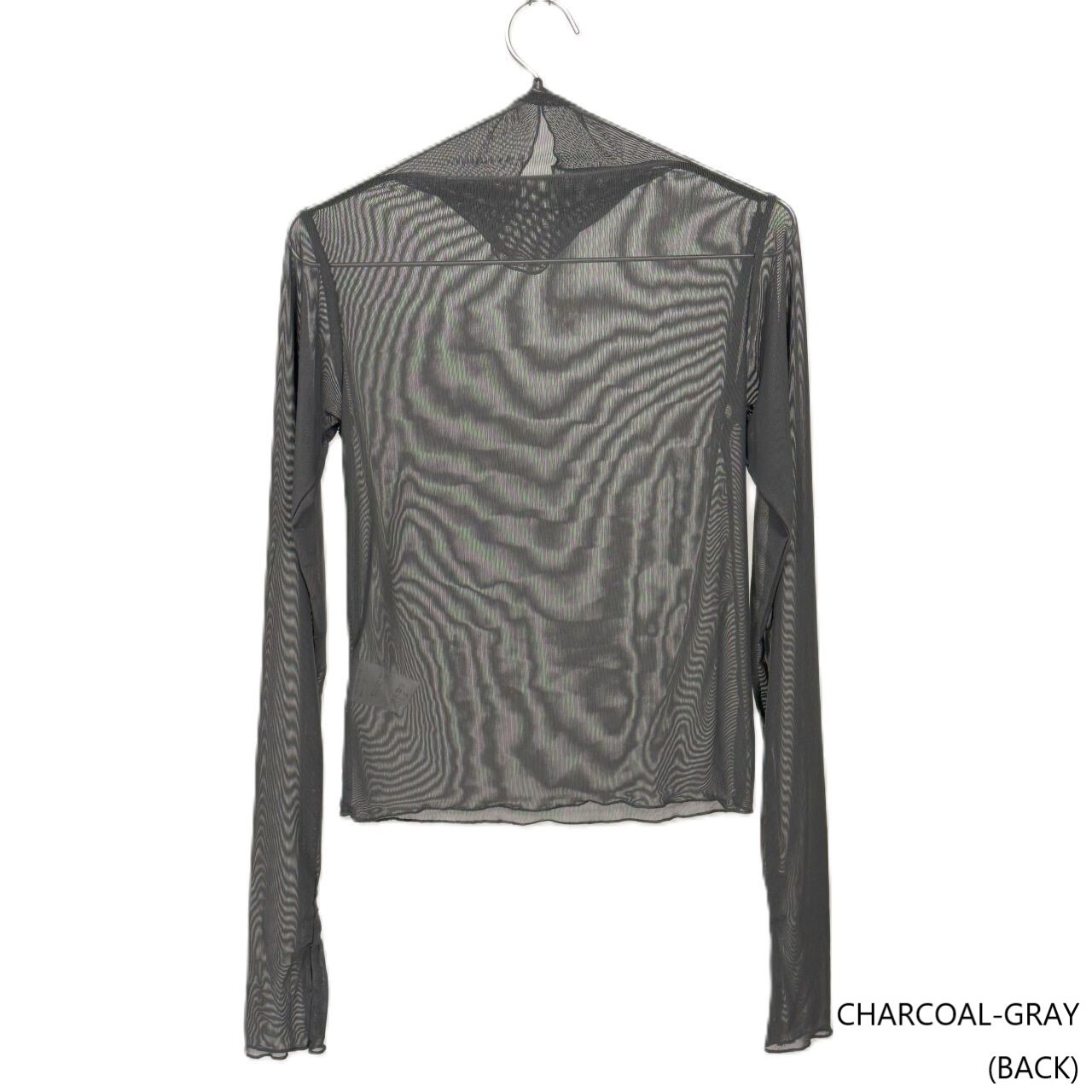 「チャコールグレーのシースルーが作るフェミニンな肌感」【クリックポスト対応】シアーハイネックプルオーバー (Natural type) | emkanan parc(エムカナンパルク) /スタイリッシュフェミニンなファッションサイト