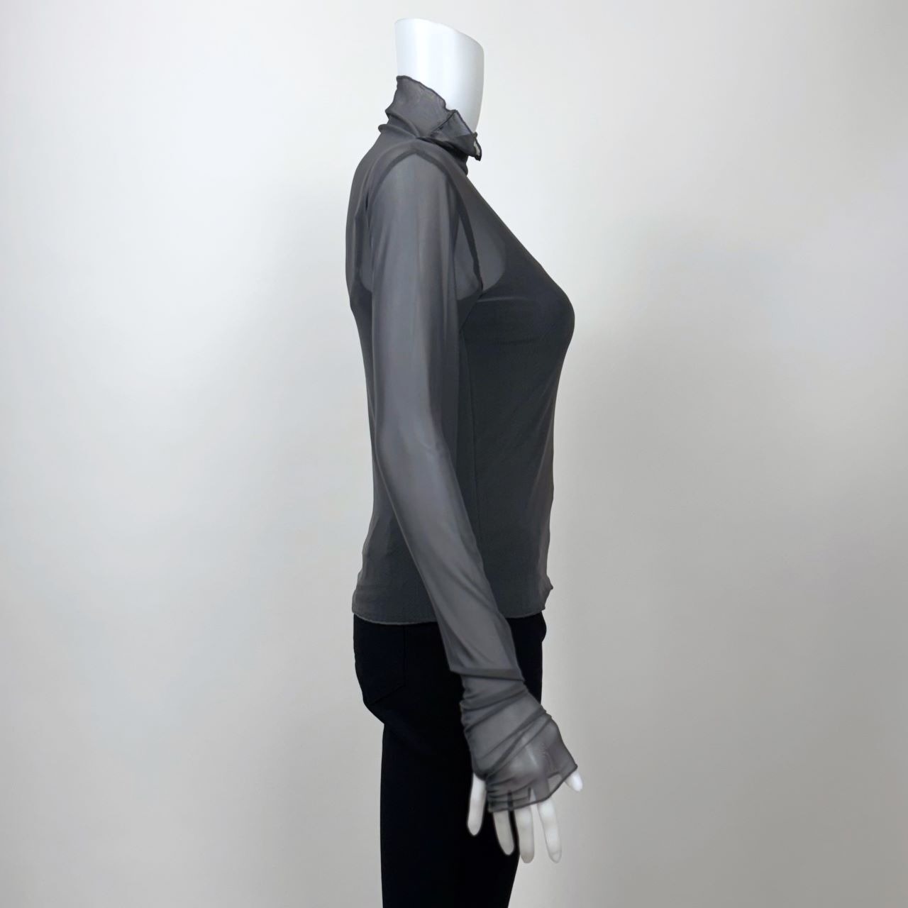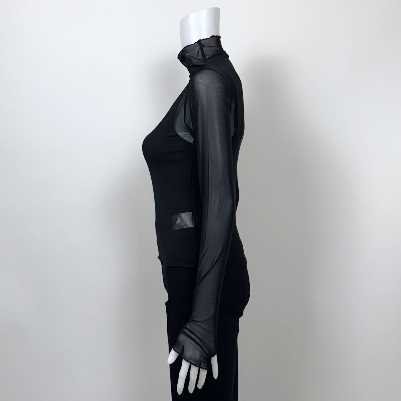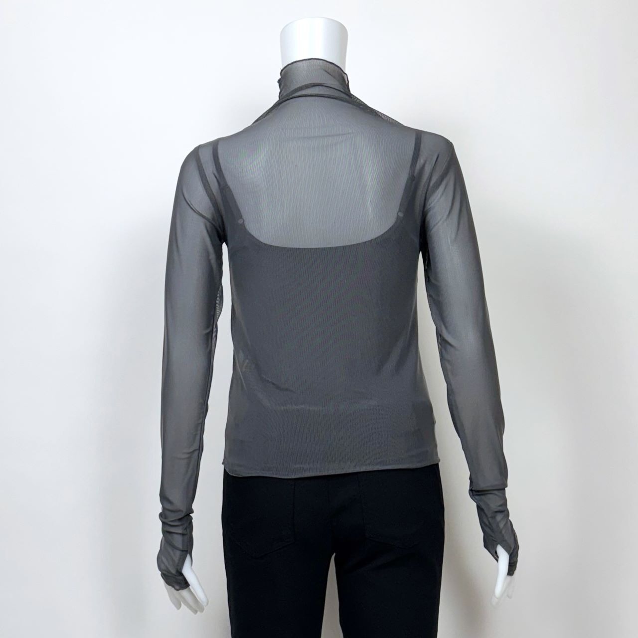 フィットしすぎないサイズ感がボディラインを美しく見せる、シアーなハイネックプルオーバー。